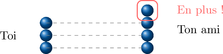 Imagine que tu as une pile de billes et que ton ami en a une autre. Comment savoir avec certitude qui en a le plus ?Tu as 3 billes : Ton ami a 4 billes : Qui a le plus de billes ?
