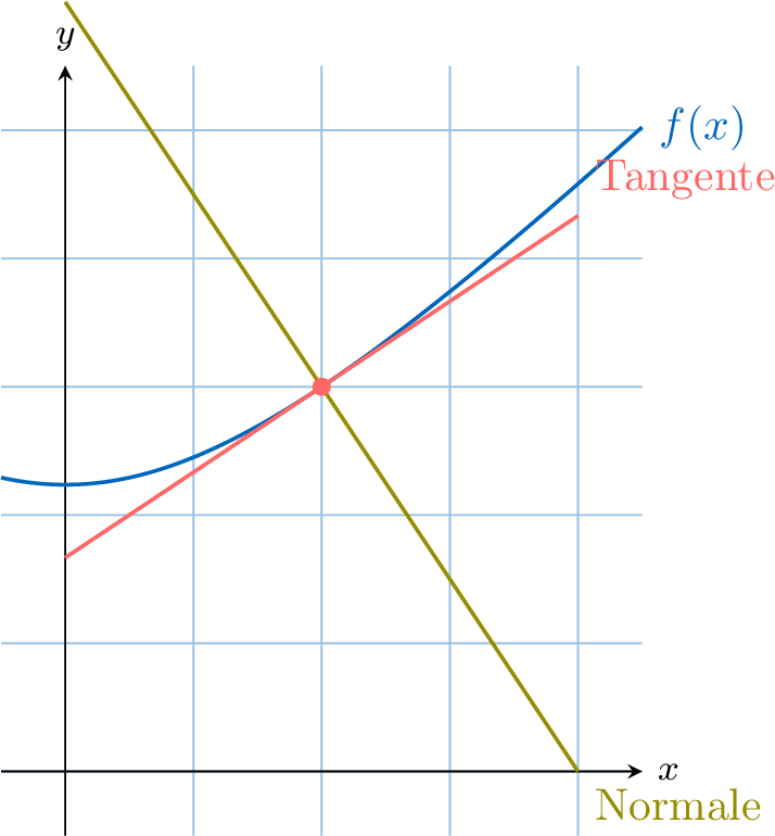 La droite normale à une courbe en un point est la droite qui est perpendiculaire à la droite tangente en ce même point.
