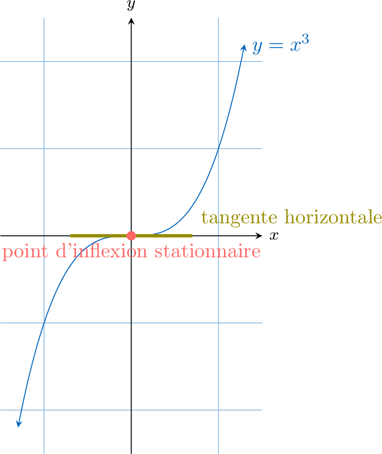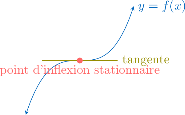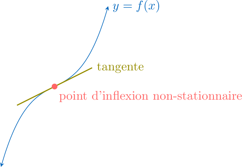 Un point d'inflexion est stationnaire si la tangente est horizontale. Il est non-stationnaire si la tangente n'est pas horizontale.
