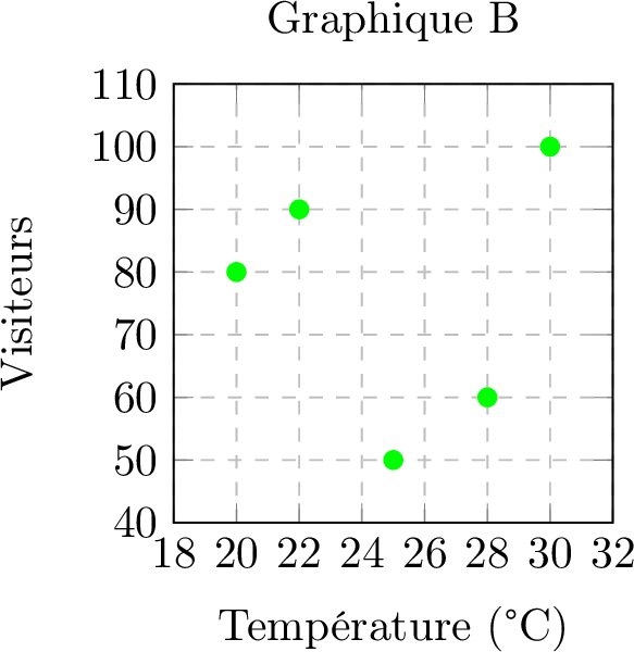 Le tableau ci-dessous montre la température quotidienne (\(x\), en °C) et le nombre de visiteurs à la plage (\(y\)).