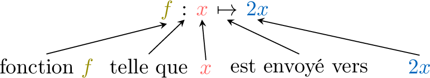 on a donc \(\textcolor{olive}{f}(\textcolor{colordef}{x}) = \textcolor{colorprop}{2x}\).