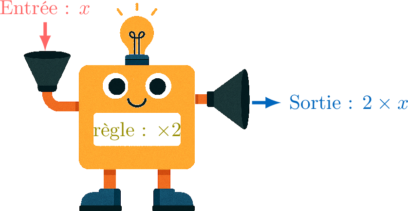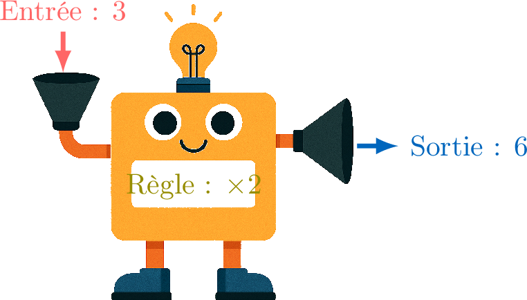 Une fonction est comme une machine qui suit une règle précise. Pour chaque nombre que tu y mets, tu obtiens exactement un nombre en sortie.