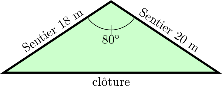Un jardin triangulaire est délimité par deux sentiers et une clôture rectiligne.