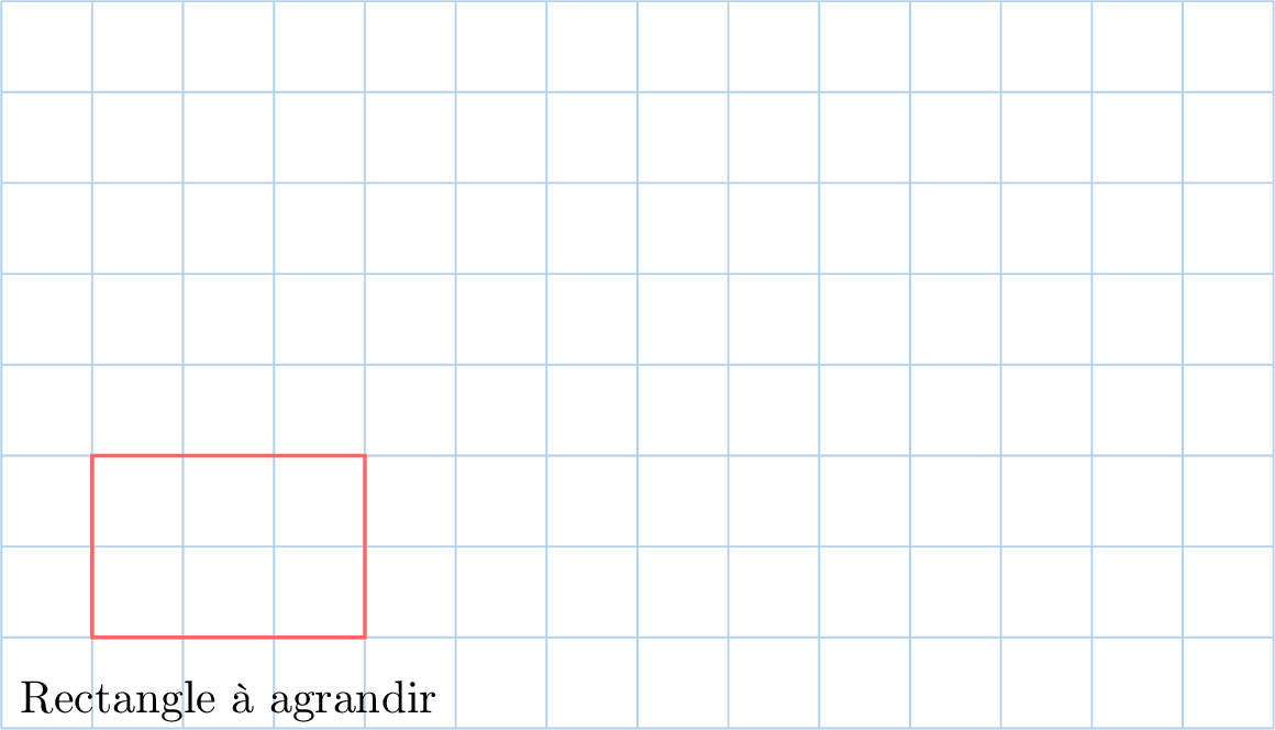 Agrandis le rectangle ci-dessous par un facteur d’échelle de 2 sur du papier quadrillé.