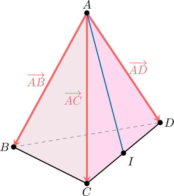 In a tetrahedron \(ABCD\), we consider the basis \((\Vect{AB}, \Vect{AC}, \Vect{AD})\).