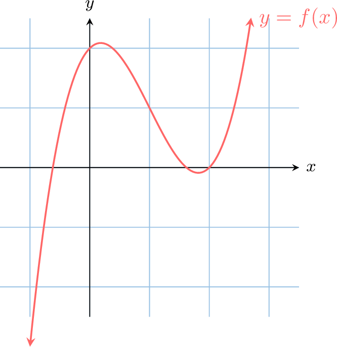 Graphically, find the point of inflection for the function \(f(x)\) shown below.