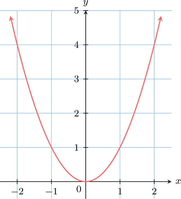 The graph of the quadratic function \(f(x)=x^2\) is shown below.