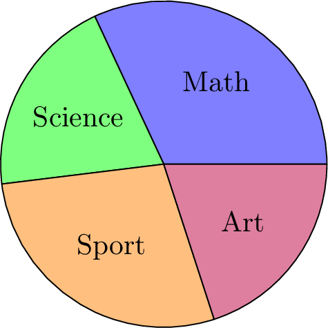 • Science: \(0.20 \times 360^\circ = 72^\circ\)