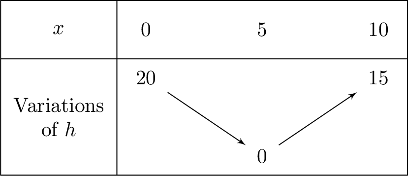 The variation table of a function \(h\) is given below: