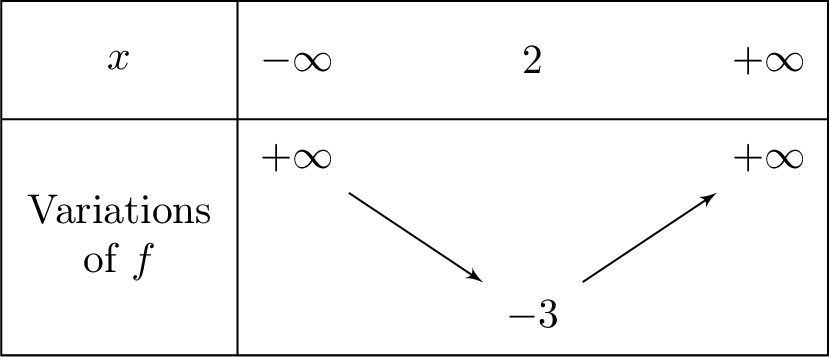The variation table of a function \(f\) defined on \(\mathbb{R}\) is given below: