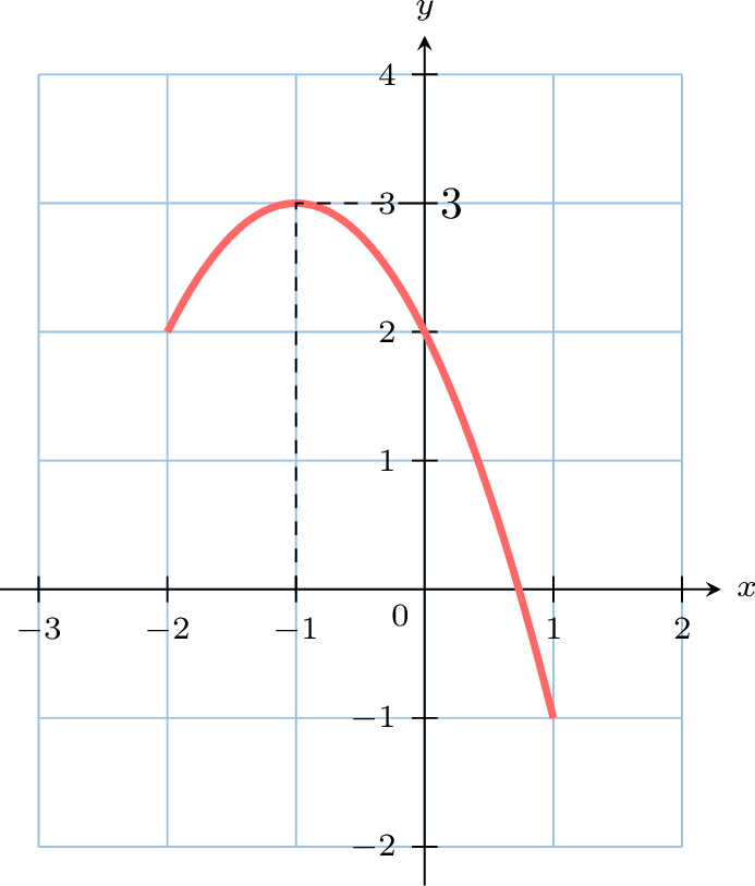 The function \(f\) is defined on \([-2, 1]\) by the graph below. Construct its variation table.