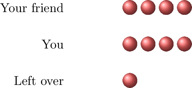 - With 9 marbles, you can each get 4, but there is always 1 marble left over.