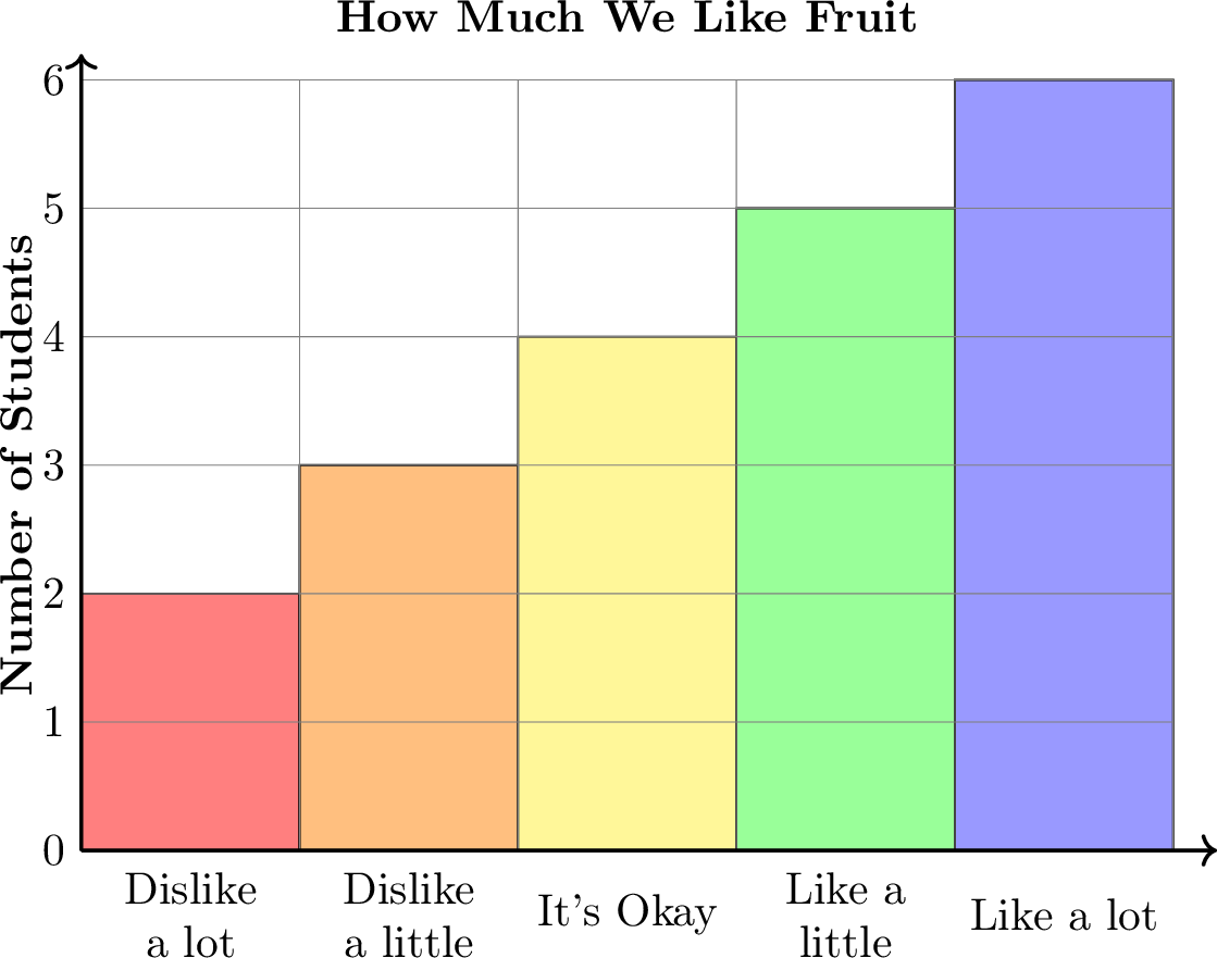 Hugo asked his class, "How much do you like eating fruit?" The bar chart shows their answers.
