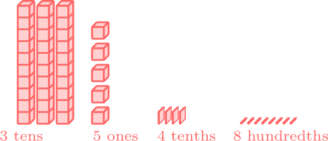 This number means 3 tens, 5 ones, and 4 tenths.