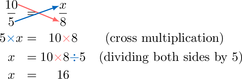 • Step 2: Cross-multiply and solve for \(x\). Multiply the numbers that are diagonal to each other.