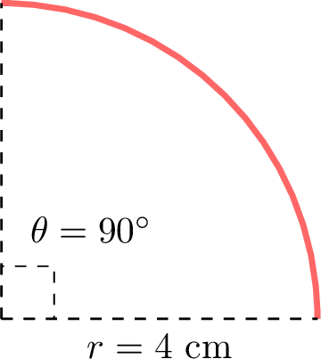 - Multiply the fraction by the full circumference. Remember, the circumference of a circle with radius \(r\) is \(C = 2 \pi r\):$$ \text{Arc Length} = \text{Fraction} \times (2 \pi r). $$