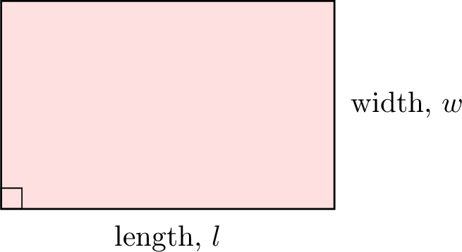 General Case: We generalize this observation. For any rectangle with width \(w\) and length \(l\), the area \(A\) is given by the product of its dimensions.