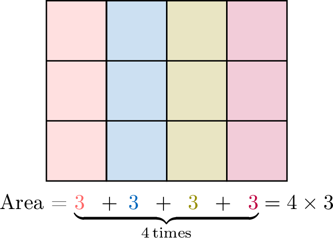 Specific Case: Consider a rectangle with a width of 4 units and a height of 3 units. We can calculate its area by counting the unit squares inside, which can be seen as 4 columns of 3 squares each.