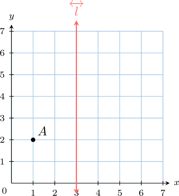 Find the coordinates of the image of point \(A\) under a reflection over line \(\Line{l}\).