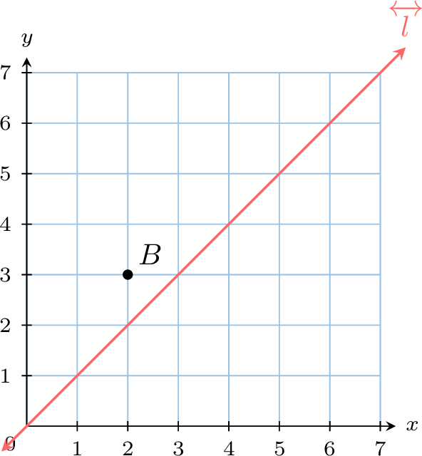 Find the coordinates of the image of point \(B\) under a reflection over the line \(\Line{l}\).