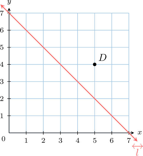 Find the coordinates of the image of point \(D\) under a reflection over the line \(\Line{l}\).