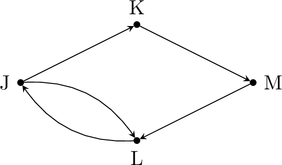 Find a path from \(K\) to \(J\).