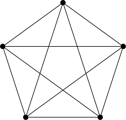Consider the complete graph \(K_5\) shown below.