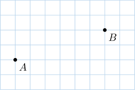 Using a ruler and a set square, draw the Voronoi diagram for two sites \(A\) and \(B\).