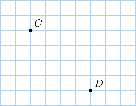 Using a ruler and a set square, draw the Voronoi diagram for two sites \(C\) and \(D\).