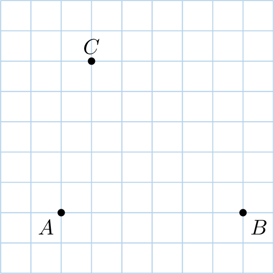 Using a ruler and a set square, draw the Voronoi diagram for three sites \(A\), \(B\), and \(C\).