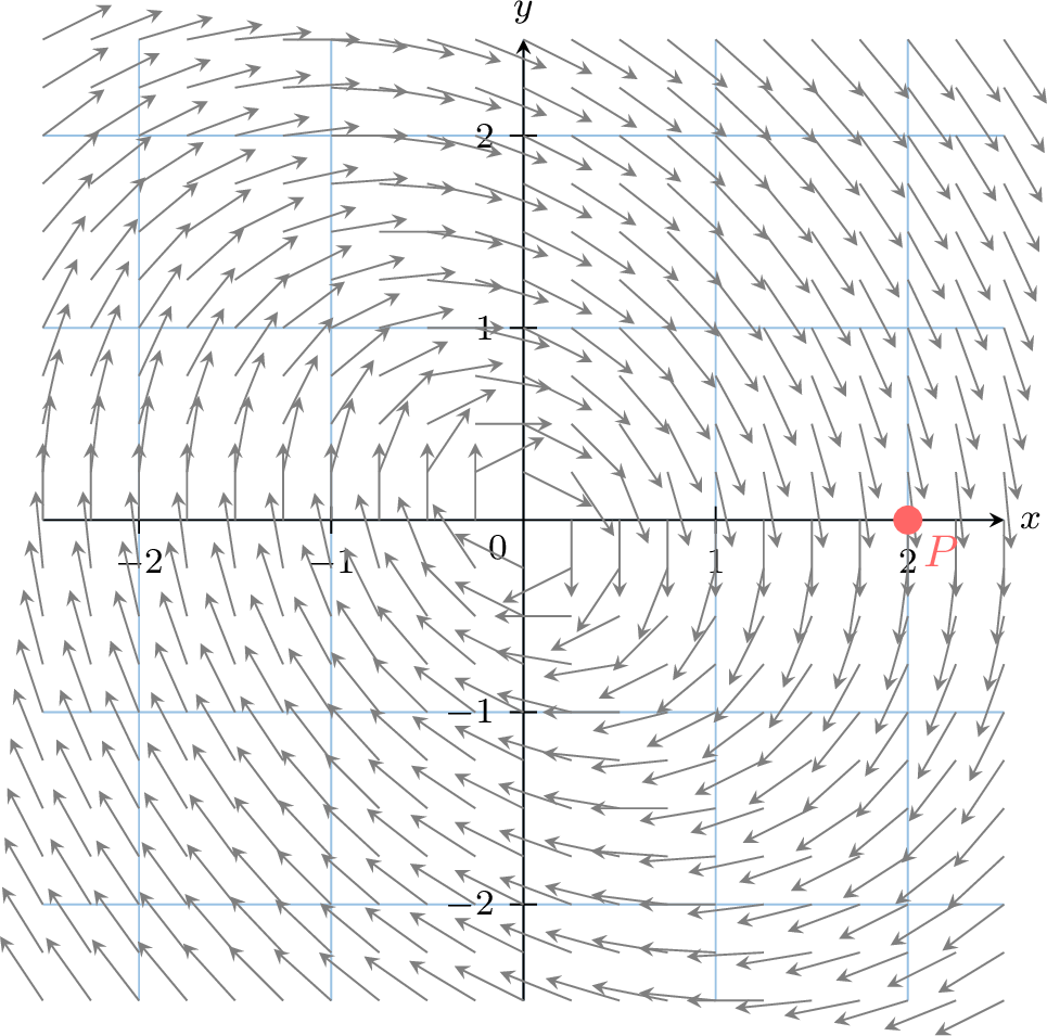 Starting from point \(P(2, 0)\), sketch the