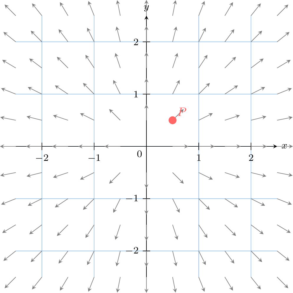 Starting from point \(P(0.5, 0.5)\), sketch the
