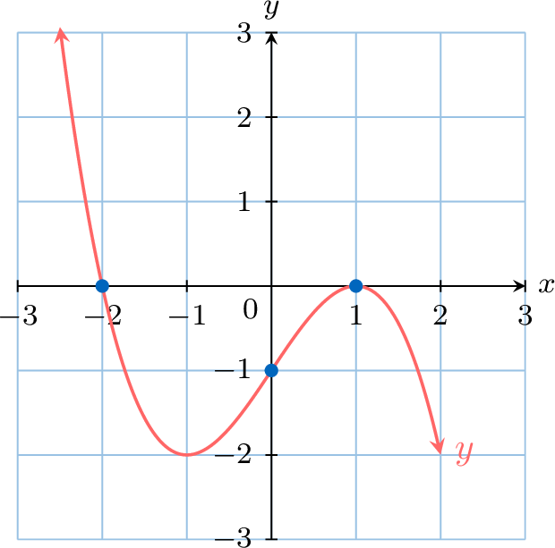 Consider the cubic polynomial \(P(x) = 2x^3 + 5x^2 - 10x + 1\). We can factor out the leading term, \(2x^3\), to see what happens for large \(|x|\):$$ P(x) = 2x^3 \left( 1 + \frac{5x^2}{2x^3} - \frac{10x}{2x^3} + \frac{1}{2x^3} \right) = 2x^3 \left( 1 + \frac{5}{2x} - \frac{5}{x^2} + \frac{1}{2x^3} \right) $$As \(x\) becomes very large (positive or negative), the fractions inside the parentheses, such as \(\frac{5}{2x}\), \(\frac{5}{x^2}\), and \(\frac{1}{2x^3}\), all approach zero.$$ \text{As } |x| \to \infty, \quad \left( 1 + \frac{5}{2x} - \frac{5}{x^2} + \frac{1}{2x^3} \right) \to (1 + 0 - 0 + 0) = 1 $$Therefore, for very large values of \(|x|\), the function behaves like its leading term:$$ P(x) \approx 2x^3 $$This general principle allows us to predict the end behaviour of any polynomial.