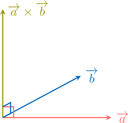 The direction of the vector product \(\textcolor{colordef}{\Vect{a}} \times \textcolor{colorprop}{\Vect{b}}\) is determined by the right-hand rule. If you curl the fingers of your right hand in the direction from vector \(\textcolor{colordef}{\Vect{a}}\) to vector \(\textcolor{colorprop}{\Vect{b}}\), your thumb will point in the direction of \(\textcolor{colordef}{\Vect{a}} \times \textcolor{colorprop}{\Vect{b}}\).