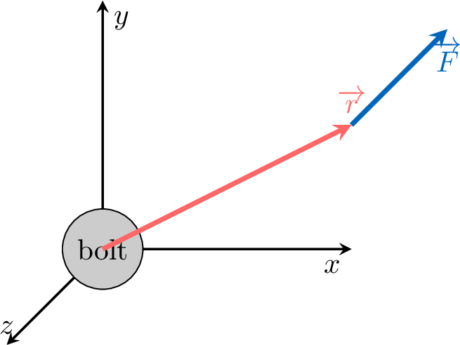 Calculate the torque vector \(\Vect{\tau}\) on the bolt. The resulting torque will be in Newton-meters (Nm).