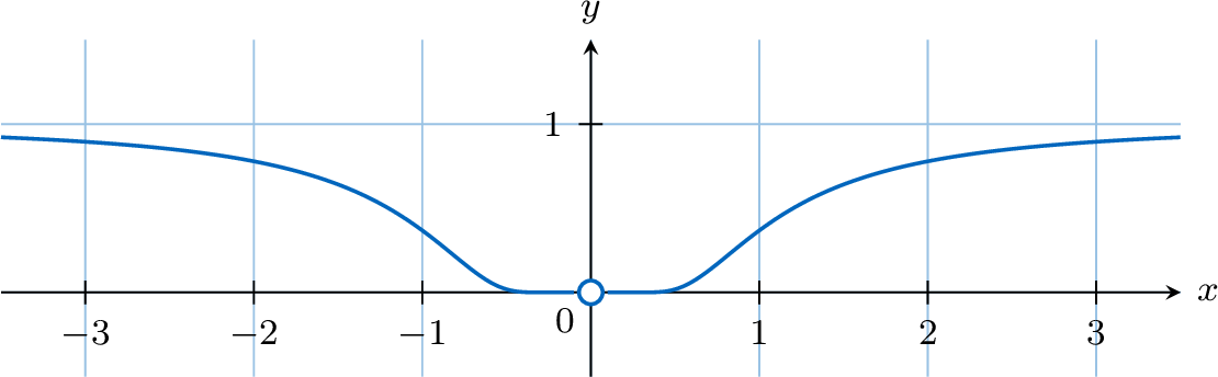 The graph of the function \(f(x) = e^{-1/x^2}\) is shown below.