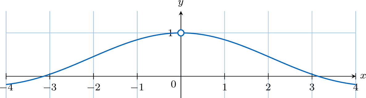 The graph of the function \(f(x) = \dfrac{\sin(x)}{x}\) is shown below.
