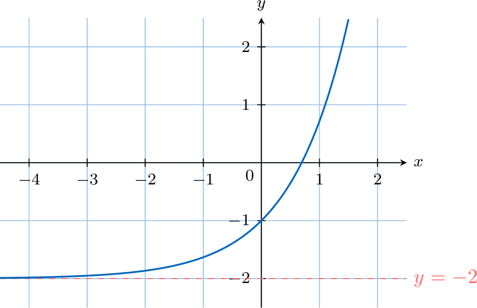 The graph of the function \(f(x) = e^x - 2\) is shown below.