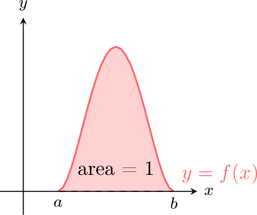 &= \sum_{x \in [90, 180]} \frac{P(x \leq X < x + dx)}{dx} \cdot dx\end{aligned}$$Here, \(dx\) represents an infinitesimally small interval, and the ratio, \(\frac{P(x \leq X < x + dx)}{dx}\) is the probability per unit length. We define this as the probability density function, \(f(x)=\frac{P(x \leq X < x + dx)}{dx}\). By the definition of integration, this summation becomes:$$P(90 \leq X \leq 180) = \int_{90}^{180} f(x) \, dx$$For a uniform spinner, the probability is evenly distributed across all angles, so the pdf is constant: \(f(x) = \frac{1}{360}\) for \(x \in [0, 360)\). Thus:$$\begin{aligned}P(90 \leq X \leq 180) &= \int_{90}^{180} \frac{1}{360} \, dx \\