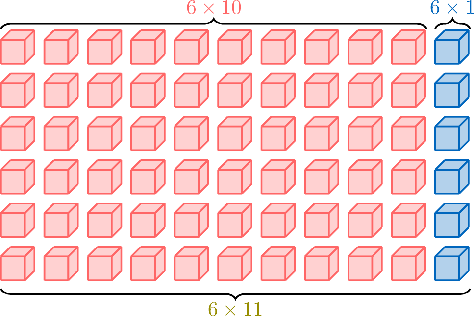 \(\textcolor{colordef}{6 \times 10}+\textcolor{colorprop}{6 \times 1}\)