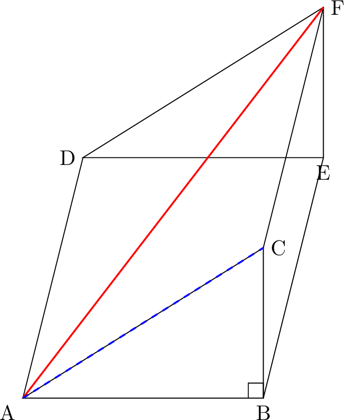 The angle that the diagonal \(AF\) makes with the vertical face \(BCFE\).