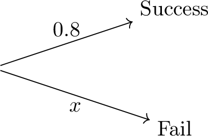 Emma is playing a video game. The probability that she completes a level is 0.8. Find the probability \(x\) that she fails to complete the level.