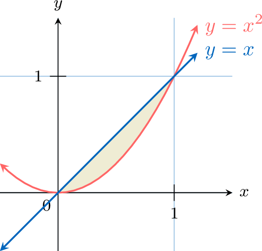 Find the area of the finite region enclosed between the curves \(y=x\) and \(y=x^2\).