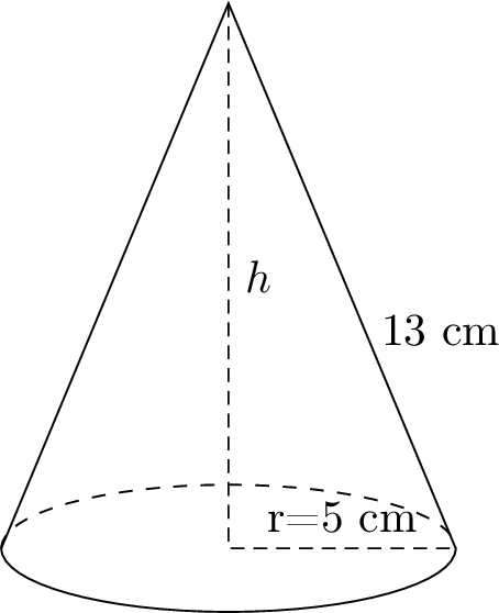 Find the volume of a cone with a slant height of 13 cm and a radius of 5 cm. (Leave your answer in terms of \(\pi\))