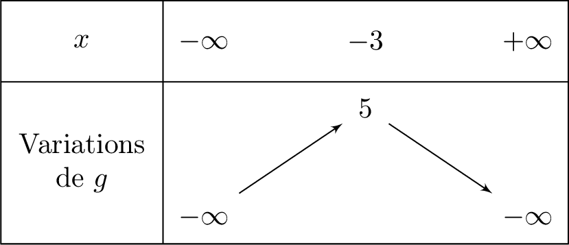 Le tableau de variations d'une fonction \(g\) définie sur \(\mathbb{R}\) est donné ci-dessous :