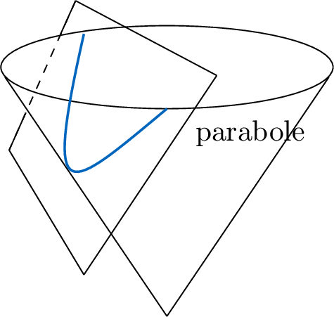 La parabole est l'une des sections coniques, qui sont le groupe de courbes obtenues en intersectant un cône avec un plan. Une parabole est produite en intersectant le cône avec un plan parallèle à sa génératrice.