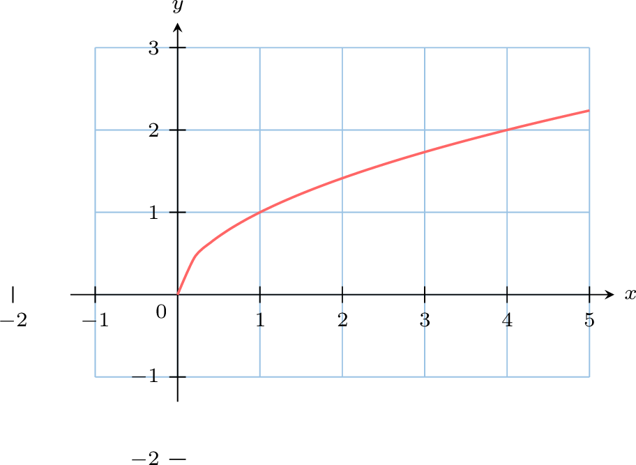 On considère la fonction \(\Fonction{f}{[0,\infty)}{[0,\infty)}{x}{\sqrt{x}}\), représentée ci-dessous.