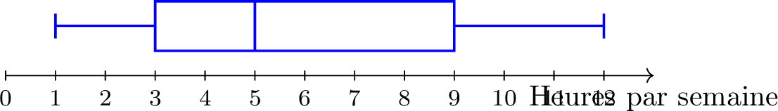 Ce diagramme en boîte montre le nombre d’heures par semaine que les élèves d’une école de musique consacrent à la pratique de leur instrument.