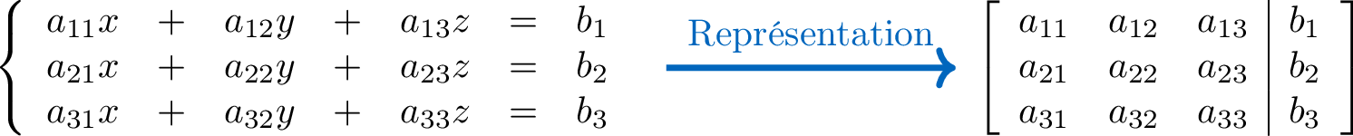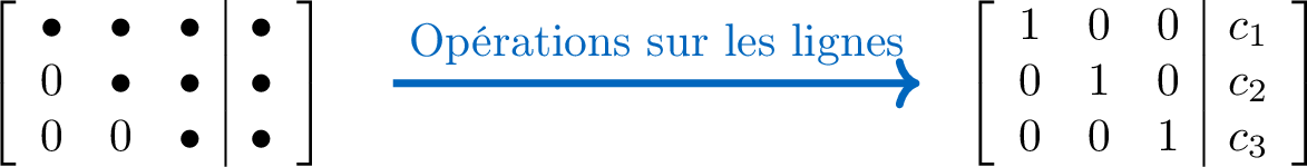 Une équation linéaire dans les variables \(x_1, x_2, \dots, x_n\) est une équation qui peut s'écrire sous la forme$$ a_1x_1 + a_2x_2 + \dots + a_nx_n = b $$où \(a_1, a_2, \dots, a_n\) et \(b\) sont des constantes. Une solution de l'équation est un ensemble de valeurs des variables qui rend l'équation vraie.