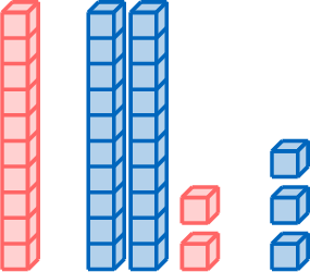 Pour trouver le total, il faut additionner les cubes rouges et les cubes bleus :$$\textcolor{colordef}{18} + \textcolor{colorprop}{23}$$Quand on rassemble les groupes, on peut voir le total.